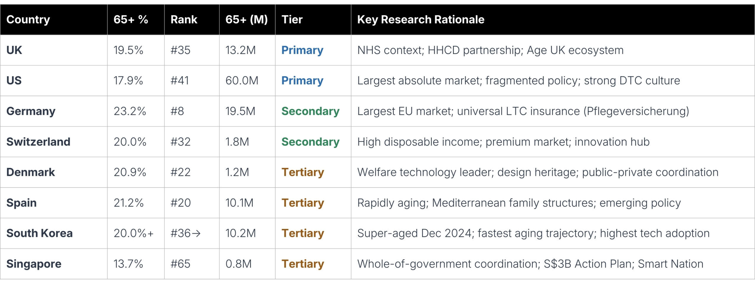 • Repeatable methodology: framework for cross-cultural aging market analysis