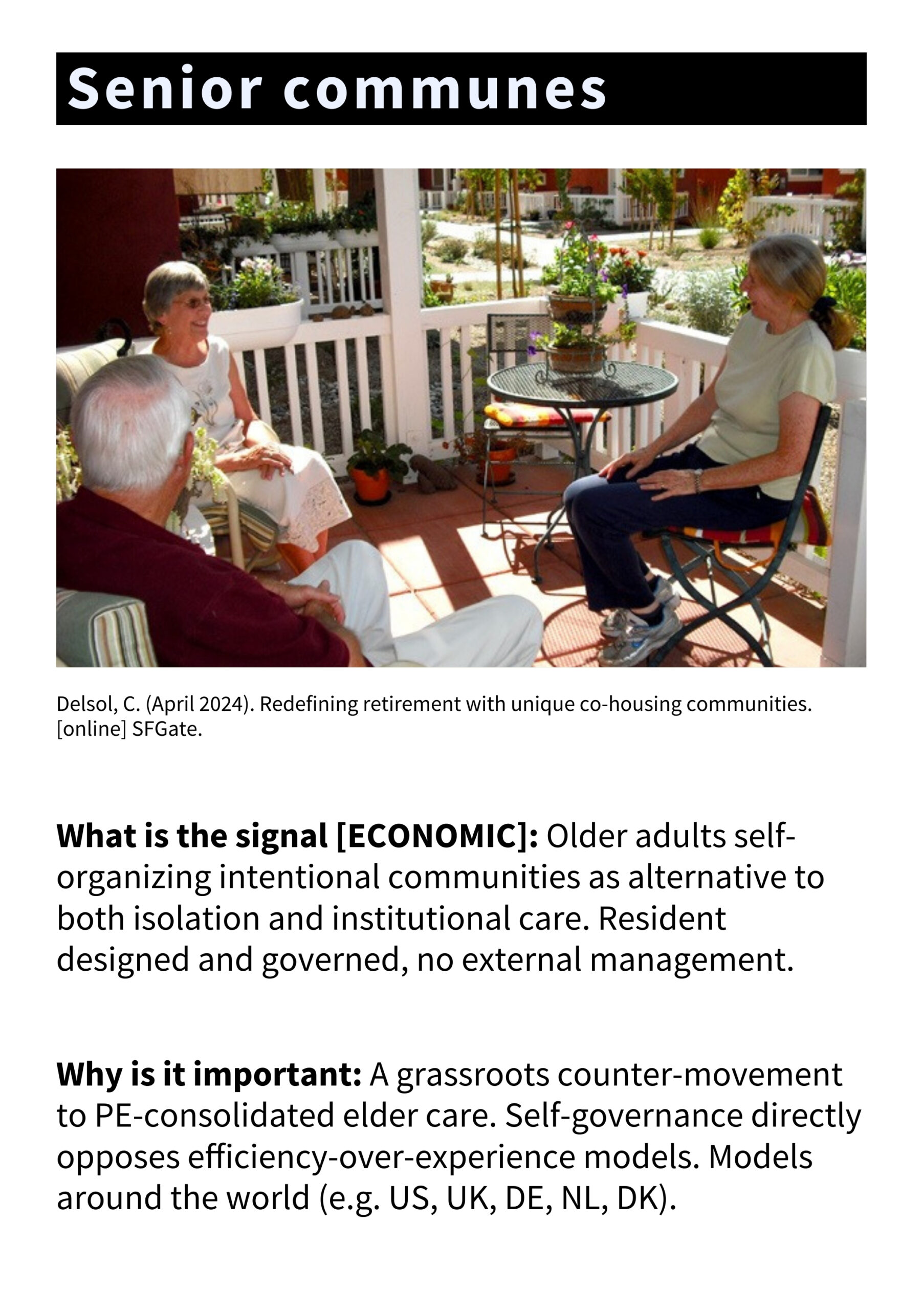 • Emerging Signals: What emerging signals suggest how the aging product landscape might evolve toward preferable futures by 2050?